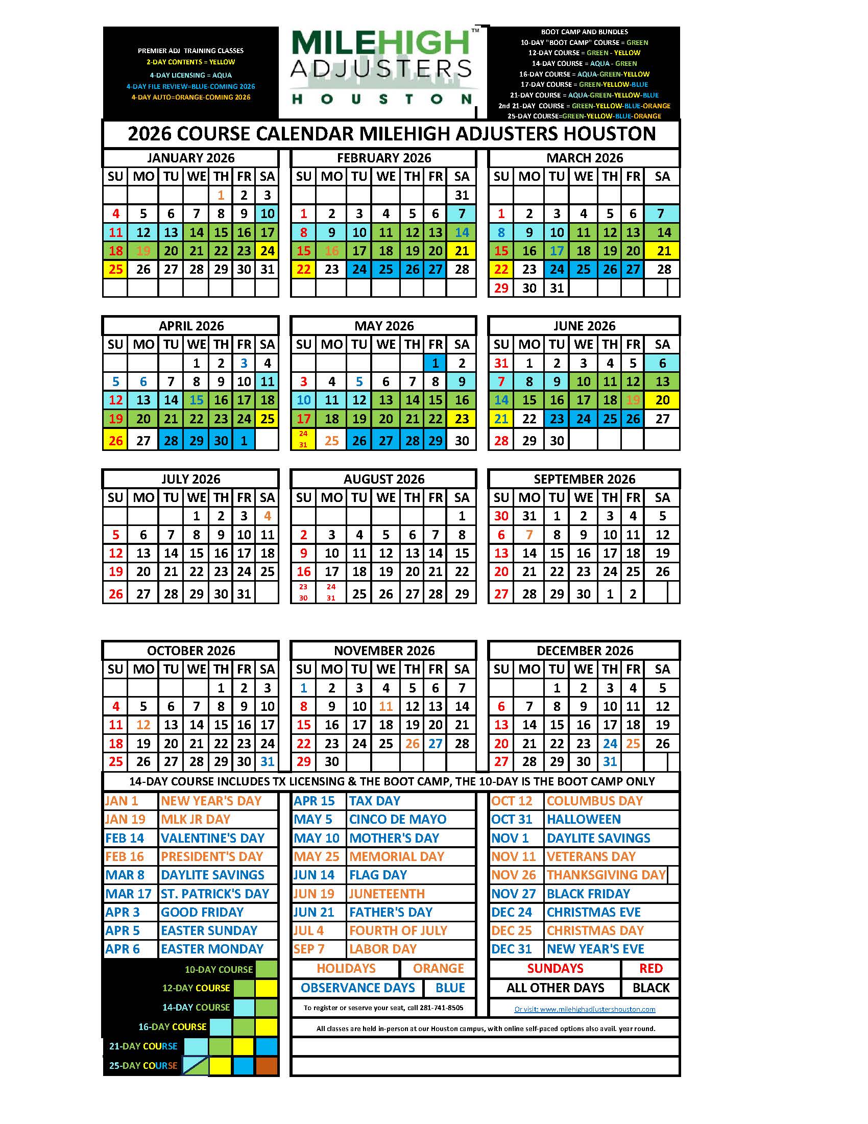 We’re currently accepting registration for the in-person classes below. To register for an insurance adjuster class, simply click on your date below and you’ll be redirected to our pre-registration system. Our pre-registration system will allow you to reserve your slot and submit payment via any major credit card.